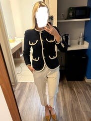 Wore so many times. Very fancy and put together. It’s a heavy blazer so not good for warm days. Got lots of compliments
