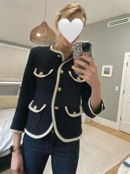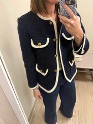 Major sailor vibes but Sandro jackets and sweaters are amazing! Loved this one for winter work attire
