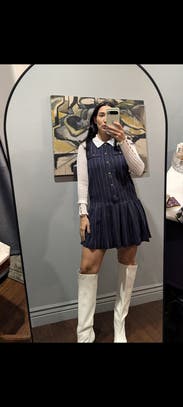 Absolutely loved this dress. Received so many compliments. Paired w an underlayer since it's cold here and Zara boots! Lots of room and very comfy for a dinner party, but also felt chic and flirty