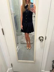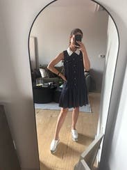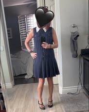 Wore to a work event and it definitely looked like I was going to private school but the dress was cute and comfy and I got a lot of compliments. I sized up one but probably could have gotten away with my true size - I have a larger chest so I wanted to make sure the buttons lay flat which they did in the size up.