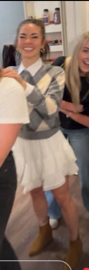 I honestly could have ordered this in a smaller size. Rented it not sure for what occassion. Found a couple times to wear it. I did borrow the white button up shirt, because the sweater seemed like it needed it. Wore it with slacks and then with the white skirt. Was told I looked like a school girl, but got quite a few compliments on that outfit.