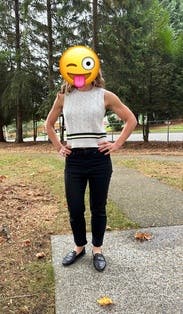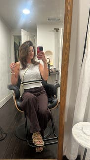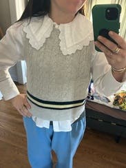 I layered over a black long sleeve but would be cute with a white tee or button up. My only complaint is that it does that thing that a lot of sweater vests do where it puckers above the bottom seem and gives the impression of a muffin top. Fine once adjusted but makes it a bit fussy to wear. Otherwise it’s good and knit is soft.