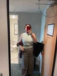 Pair as well with wide leg will work pants and also with baggy jeans for the weekend. This is the second time I've rented it. I think I would size up if I rented it again for winter to layer something underneath it.