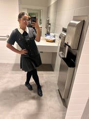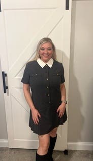 I love this outfit! The fit is super flattering, the material feels high-quality, and it’s the perfect mix of classy and cute. I can easily wear it to the office or dress it up for after-work plans. The removable collar is such a bonus! I can switch between a polished look for work or a more relaxed style for evenings. The gold buttons add a really nice touch without feeling over the top. Overall, it’s comfortable, stylish, and versatile. I’ve already gotten compliments on it and definitely recommend it!