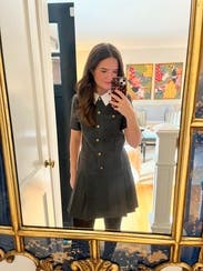 I thought this dress was cute but fair warning that it is sparkly and the collar is detachable so it doesn't sit totally flat