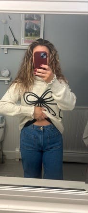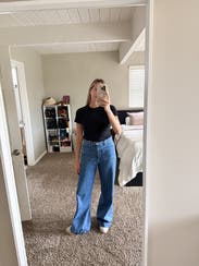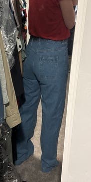 To say I’m in love is a complete understatement. It’s like these jeans were made for me. I usually don’t like high waisted pants because I have a sort torso. These jeans made me feel so confident. I just need some warm weather and a floral tube top and it’s a 1970’s summer. I’m 5’4” and am wearing a platform sneaker in the photo. I wore them with Sambas yesterday and they just touched the ground. They are more fitted in the waist than Citizens of Humanity and are more comparable to Maje jeans sizing for me. Arrived NWT. Strong chance I’ll buy these ones.