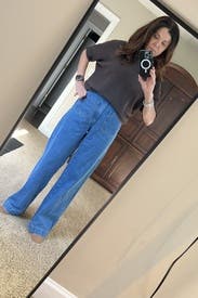 The jeans felt great, liked how they looked on me, had just the right amount of stretch, and loved the overall style, but they are looong. Not wearing shoes in this pic, but would need 3in heels to get them off the ground. Would be great with the right type of shoe.