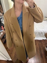 This is the PERFECT camel jacket. I rented this for a work trip and it was incredibly versatile It is a heavy jacket but it’s exactly what you want when walking around in a cold city.