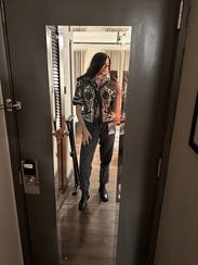 I paired this shirt with coordinating trousers for an ideal Santa Fe outfit. But I wore it separately with black jeans and shorts — it always got a comment.