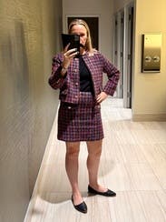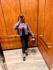 I’ve wanted to experiment with tweed to see if I could pull it off and I fell completely in love with this jacket. Super petite friendly with the arms hitting me exactly right and the crop length also perfect. So stunning and expensive looking, if it wasn’t actually so expensive I definitely would’ve purchased it!