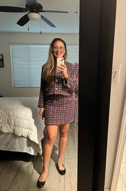 The jacket was structured and paired really well with the skirt. TTS, I would rent again.
