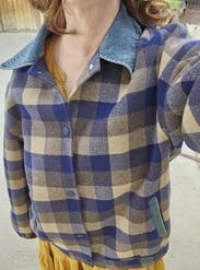 This was my favorite piece in my shipment. It's adorable with the jean collar. I will say that it is not lined so it's not much warmer than a thick flannel shirt. But the fit and colors are great!