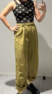 The pattern on this top which i thought was abstract shapes is actually a logo. This combined with a very sheer fabric, I did not wear. The photo of the top looks a bit more chic it’s actually like a combo sexy going out top w sporty logo which I found a weird combo.