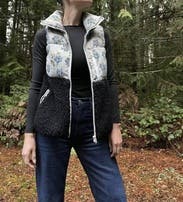 I wore this vest day-to-day for outings like a school assembly, errands, etc. It’s super warm, and the jacquard floral panels are really beautiful and unique. However, I felt the overall fit of the vest was too large for my preference and the sherpa lower panels looked a little worse for the wear. Overall I considered this a very mediocre rental, but good enough for everyday running around.