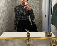 I’m obsessed with this top. It feels very fancy with the mesh and fit me perfectly. Not very warm with the mesh but perfect for date night!