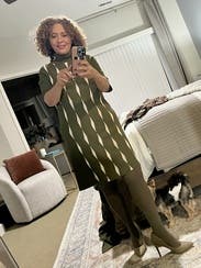 I love a good sweater dress for the season, and this one was just right. It didn’t accentuate any of my trouble spots, and the material was soft, cozy, and super comfortable. An easy yes for fall and winter.”