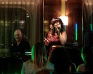 Wore for a jazz show on a cruise ship. Lots of stretch and the bandeau shape top has enough fabric to cover a strapless 36DD bra. Very forgiving and flattering for hips.