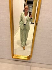 I liked this blazer and got several compliments on the color, but struggled to style it how I initially planned. It is long (I’m 5’8”) and the double breasted style makes it feel wide when worn unbuttoned. That said, I still enjoyed it and it was a great weight for a summer work event.
