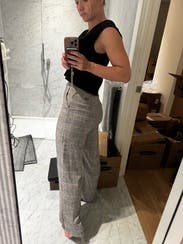 New with tags. Love when that happens. Wore with the jacket. A bit lightweight for w winter. Wrinkles easily. Very wide leg. Tight at waist. Length fine for 5’2 with 2 inch heels n