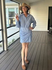 This shirt dress is everything. So flattering and easy. I could get away with not pressing it but it was easy. Also I would have sized down one size. I tend to overcompensate on size because of my top but it made the bottom looser too and it wasn’t necessary. Snugger would have been even cuter.
