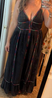 I love this dress likely more than anything I've ever rented! So easy to throw on! I wore a little black bralette with it. So comfy, so easy, so many compliments. So sad to return!