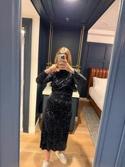 This dress was an absolute showstopper! The velvet pattern caught the light beautifully and felt both elegant and comfortable. The fit was flattering — hugged my curves in all the right places without feeling too tight. Perfect for a fall or winter evening event. I paired it with black heels and gold jewelry, and it felt timeless yet modern. Highly recommend if you want to look sophisticated and confident.