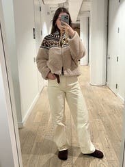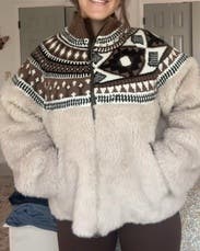 I love this so much I don’t want to give it back. Very cozy, slightly boxy but true to size. The only complaint is that it’s very hard to zipper because the fuzzy fleece gets caught in the zipper. 10/10