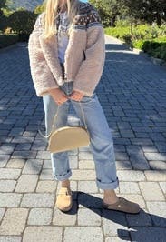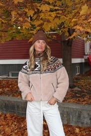 The Sea New York Linea Fairisle Knit Combo Fleece Jacket is a stylish piece with a plush fleece body and a fair isle knit panel. For a versatile look, wear it with jeans for a casual outing or with trousers for a more polished look.