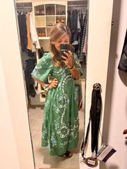 It’s not the most flattering dress I’ve ever worn due to the baggy shape, but loved the color and embroidery — and it has pockets! I’m 5’4 and it hit me a little above the ankle. Only downside is that it has a built-in slip which is annoying when you’re trying to get the dress on and off. Ended up wearing this multiple times.