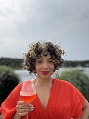 This Red dress has a vibrant orange undertone. I have an aperol in my hand so you can see the contrast. It is definitely a red dress Super comfortable