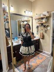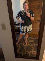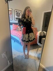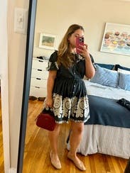 This dress was so stinking cute. It wasn’t brand new, and that actually made the dress feel even better. It was so soft, and hung wonderfully. I have a bit of an apple shape, so the silhouette on this gave me a little bit of a waist. If you have a small waist, this would be even better on you. It also did camouflage the fact that I am top-heavy. Oh, and POCKETS!!