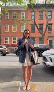 Wore the shirt backwards for a high, clean neckline and it was so cute. Paired with the matching skirt and a rented blazer—RTR head to toe.