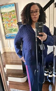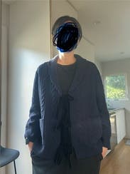 Loved this sweater. Super cute and cozy. The velvet ties were a nice touch. I could see this being dressed up. The cardigan was a bit shorter than I expected just noting that.