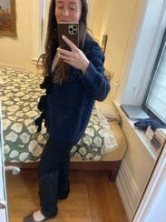 This was a cute sweater and I enjoyed wearing it but it was a tad itchy and had lint on it from wear. The bows were hard to see against the sweater so it didn’t look as cute in person, but it was super warm.