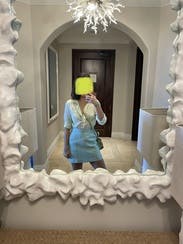 I was extremely excited for this skirt. I planned on wearing it with a white button down ( tied at the waist) but I felt the slight flare with it being so short just looked odd. I ended up pairing with a silk blouse and it was fine. Nothing I would rent again. It was also a bit tight at the waist. I should have sized up.