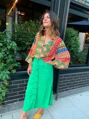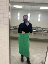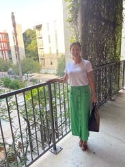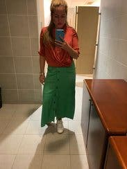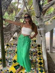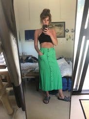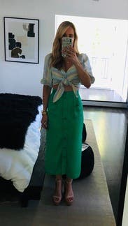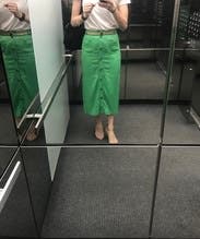 I wore this skirt to a backyard party and got a ton of compliments - the green color is definitely a head-turner and the slits on the sides are such a fun touch. The fabric is very soft but it does get wrinkled easily