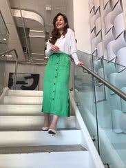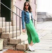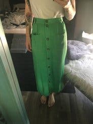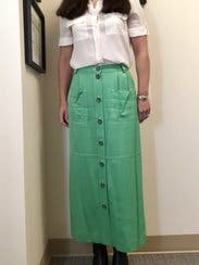 I loved this green Chloe maxi skirt. The style was so fun as was the color. It worked great with flats/ sneakers. It was comfortable to wear and had great movement with the light materials and the cut/ side slits. Highly recommend.