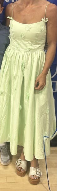 Runs a little big so downsized and fit perfectly. I wore Mothers Day but could be lovely for an wedding Brunch