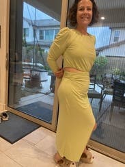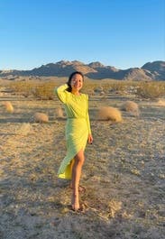 Lime/neon green is definitely not a color I would have considered buying clothes in, but this is so super fun. Material is stretchy and relatively thick, and the cutouts plus the slit in the skirt made it super cute. Wore out in New Orleans and got lots of compliments.