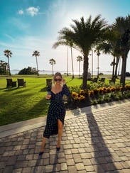 This dress what super flattering and hugged at the right places! I did size up to a 4 and normally am a 2 and glad that I did!