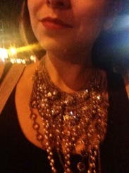 I felt very glam wearing this necklace. It is definitely a true statement piece and goes great with a solid color dress. I wish I could buy it!