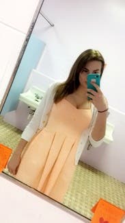 I originally rented this to possibly wear at a wedding. When it came in I didn't really like it on the hanger, but tried it on anyways and I am glad I did. Although I didn't wear it to the wedding, it was a great sundress that could be worn for many different events. I ended up wearing it to work with a sweater over it. The zipper can be a bit tricky, but overall its very slimming and flattering.