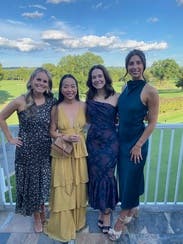 This dress is very pretty in person. I usually have trouble renting long dresses since I'm only 5'3ish but this worked well because it would have looked good no matter where it hit you on your calf. The fabric had a little give in it so wore the size 4 (vs. 6) but probably could have gotten away with a 2.