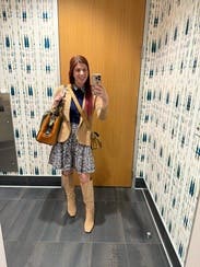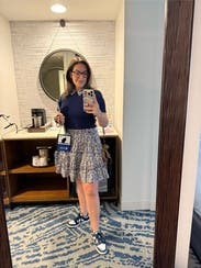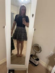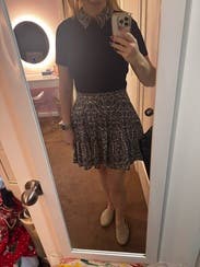 Loved it. Wanted to buy! Especially likedthe top half, the collar and the ribbed shirt. Also liked the skirt but it can look a little baggy on some I’m sure.