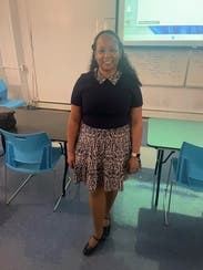 This dress is great! Professional and stylish, work appropriate, and doesn’t have to be iron. I will definitely be renting this one again. Fit true to size skirt is a thinner material and top is a heavier ribbed material.