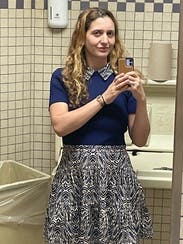 Fun outfit, very flattering. Pockets are awesome! It’s very difficult to hook the collar without seeing and difficult to feel.