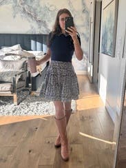 I love this dress!! I hate to send it back but I hope to rent (or even buy) it again. I wore it to work, a dinner date, running errands, Webex calls when I worked from home… it’s easy to dress up and down. I wore it with boots, pumps, and loafers. Never had to iron.. it always looked nice and unwrinkled. I typically wear an XS/SP and a 24 or 25 in J Crew. I’m a 32D, 5’2.. 33-26/27-36. I took a S in this one and it wasn’t figure hugging.. gave me a little room in my waist which felt perfect. Rent this!