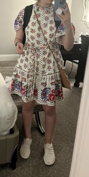 Loved the dress! So feminine and fit great. Beware of wearing this dress on windy days though:)