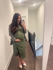 This dress worked for maternity just size up one size. Very comfortable and perfect for the office.