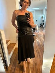 Rented this dress for a gala event and it was a show stopper! I felt fabulous in it and received so many compliments. It was surprisingly comfortable as well. I was a little concerned the "faux" leather would look cheap but it doesn't at all! Loved, loved, loved!!!!